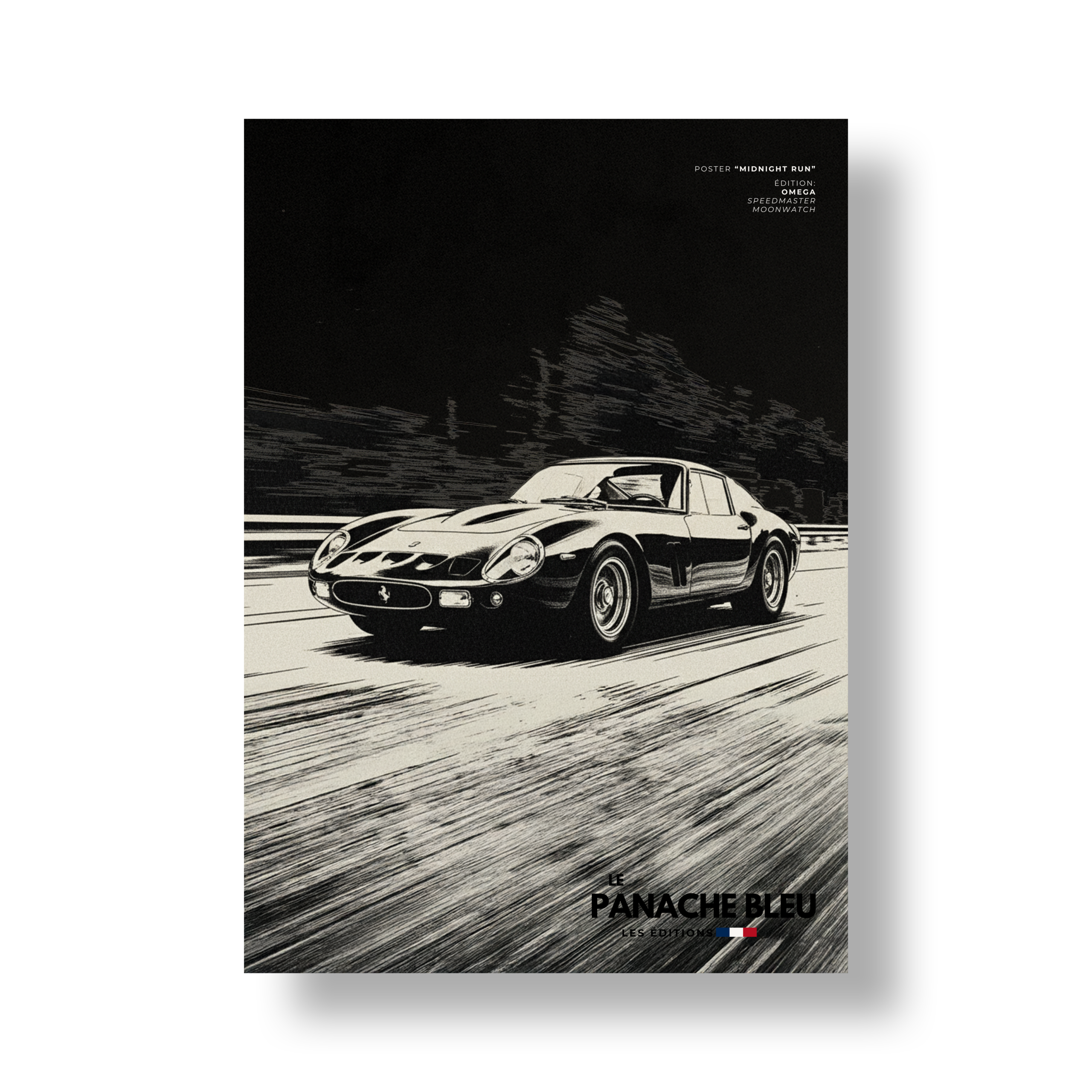 Le poster “Midnight Run” capture l’intensité d’une course nocturne à travers une scène d’une élégance absolue.